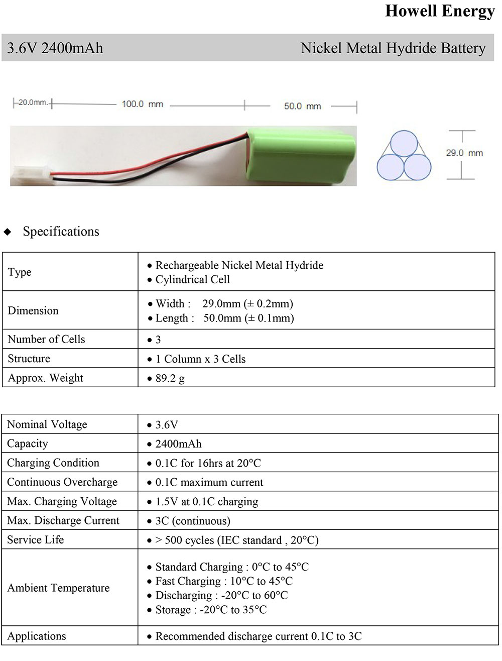 ACCU Ni-MH battery 3.6V 2400mAh rechargeable (for Max Bright) – รับประกัน 1 ปี