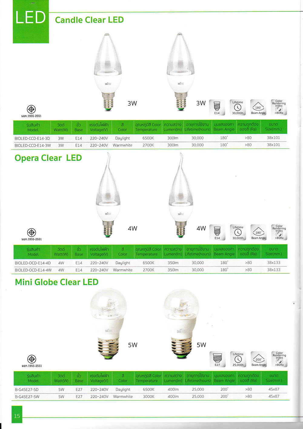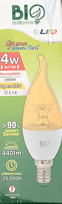 หลอดแอลอีดีรูปทรงเปลวเทียน ยี่ห้อไบโอบับ ขั้ว E14 แสงสีเหลือง