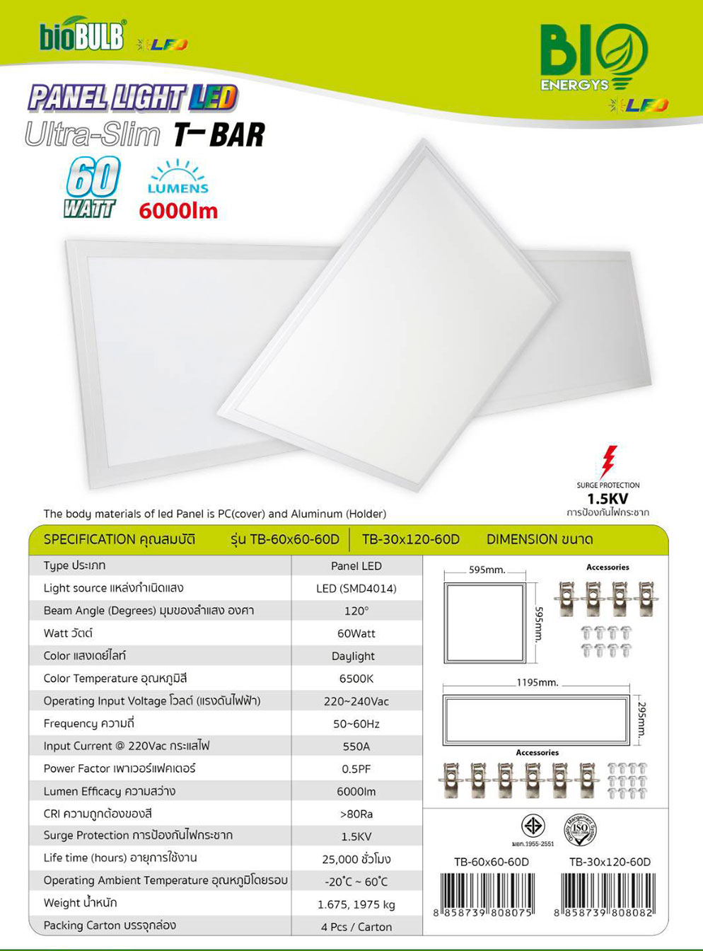 bioBULB PANEL LIGHTR Ultra-Slim T-BAR 60W 6500K day