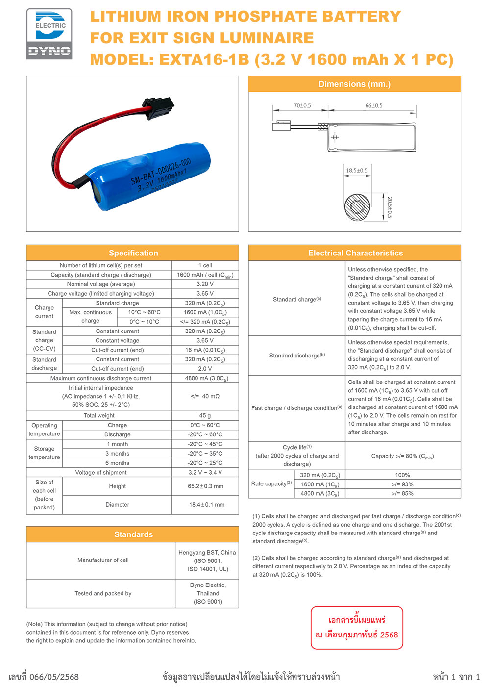 Dyno Battery EXTA16-1B (3.2V 1600mAh)