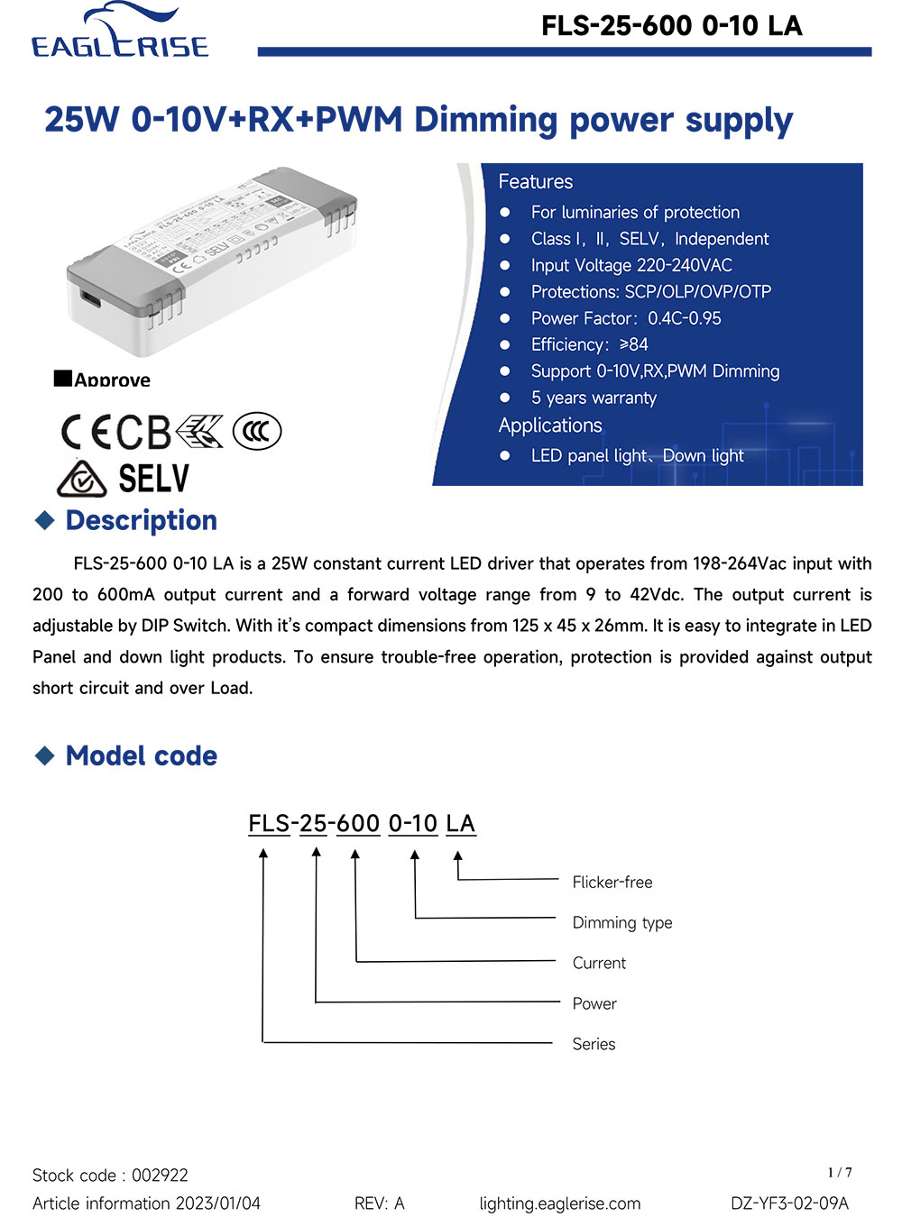 Specification download FLS-25-600 0-10 LA spec REV A