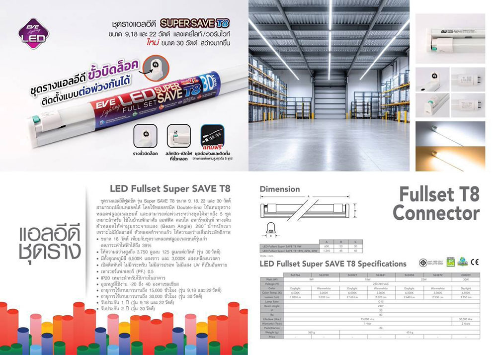 รางไฟ พร้อม หลอดแอลอีดี 9 วัตต์ หลอดสั้น 60cm. แสงสีขาว ยี่ห้ออีฟ