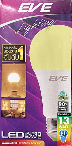 หลอดแอลอีดีบับ ยี่ห้ออีฟ 13 วัตต์ แสงสีเหลือง วอมไวท์ ขั้ว E27