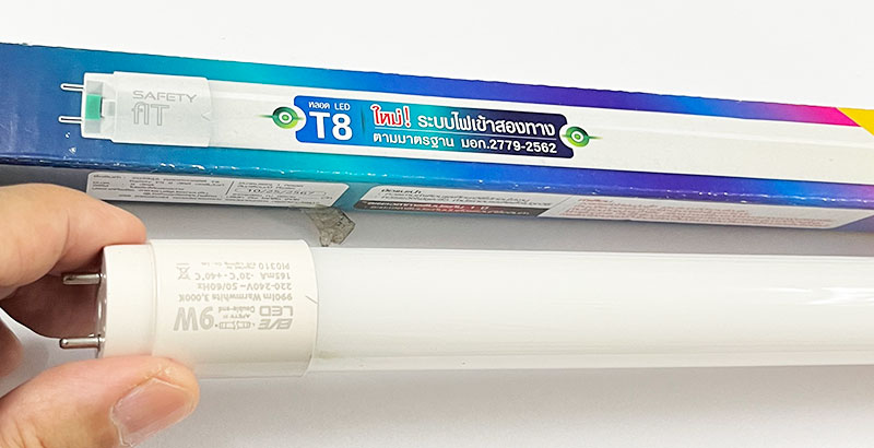 หลอดแอลอีดี ยี่ห้ออีฟ ขนาด 9 วัตต์ เป็นหลอดแก้ว ไฟเข้า 2 ทาง แสงวอมไวท์ แสงเหลือง