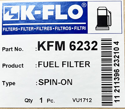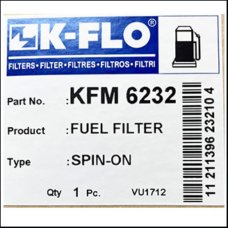 ฟิวเตอร์ ยี่ห้อ K-Flo รุ่น KFM 6232 Fuel filter