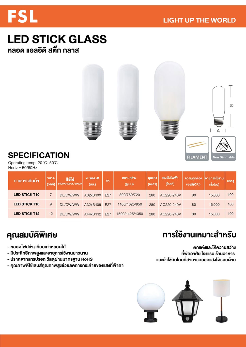 หลอดไฟแอลอีดี ยี่เอฟเอสแอล ขนาด 12 วัตต์ แสงสีขาว ขั้ว E27