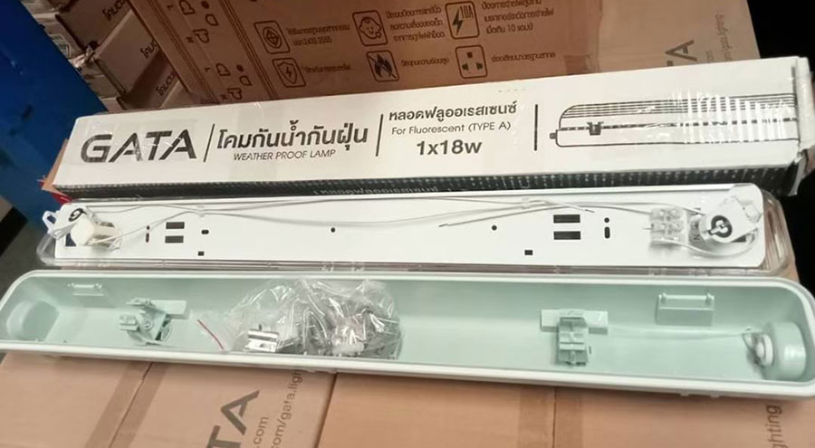 * โคมพร้อมบัลลาสต์ 18W และสตาร์เตอร์ + หลอดไฟ ครบชุด