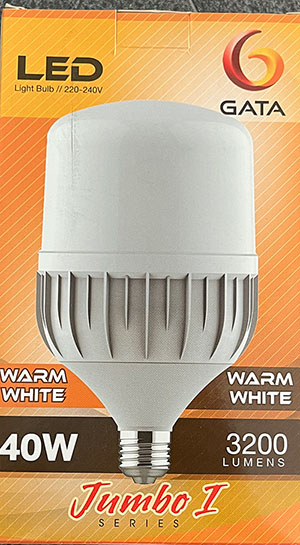 หลอดแอลอีดี รุ่นจัมโบ้ ยี่ห้อ กาต้า ขนาด 40 วัตต์ แสงสีเหลือง วอมไวท์ ขั้ว E27