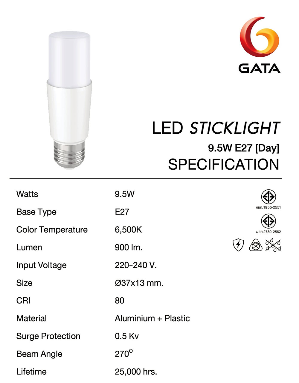 หลอดแอลอีดียี่ห้อ การ์ต้า 9.5 วัตต์ แสงสีขาว ขั้ว E27