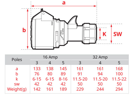 224-6V 32A 400V 4 Pin ( 3P+E ) สีแดง