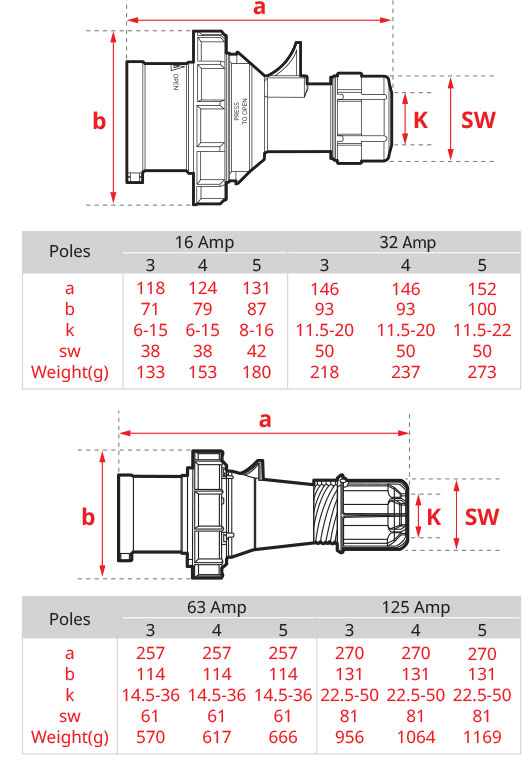 034-6 63A 400V 4 Pin ( 3P+E ) สีแดง