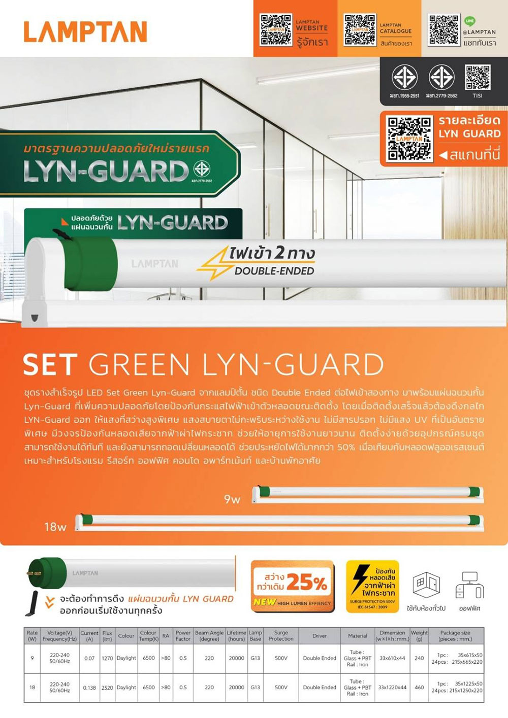 Lamptan LED set Green Lyn-guard 18W 6500K day