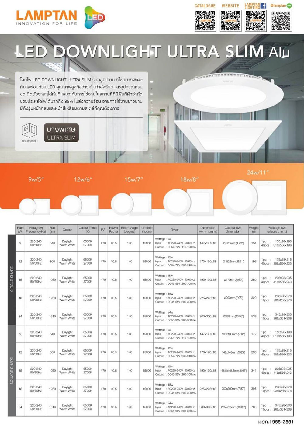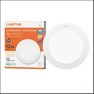 ดาวไลท์ แอลอีดีพาแนล หน้ากลม ฝังฝ้า ยี่ห้อ แลมป์ตั้น ให้แสงสีเหลือง วอมไวท์ ขนาด 12 วัตต์