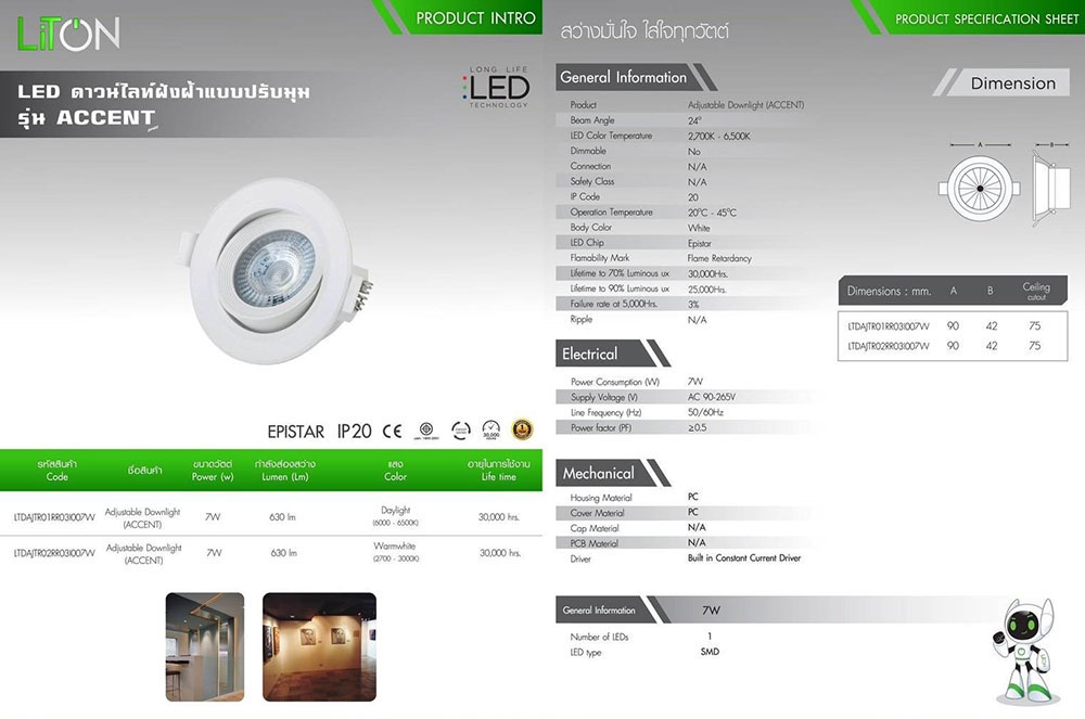 ดาวไลท์ ขนาด 7 วัตต์ แสงสีเหลือง