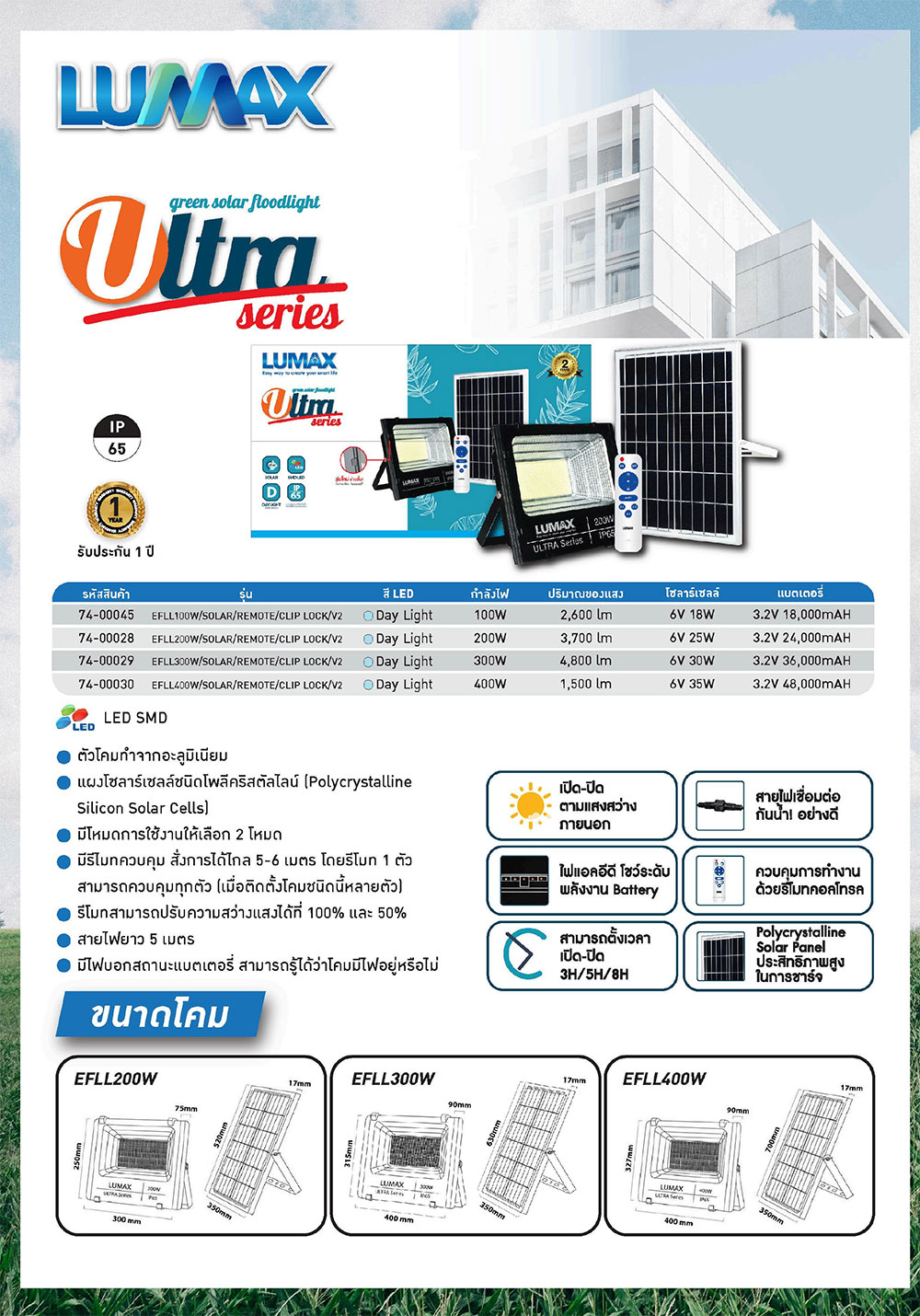 โคมแอลอีดี โซล่าเซล ยี่ห้อลูแม๊กซ์ 300W