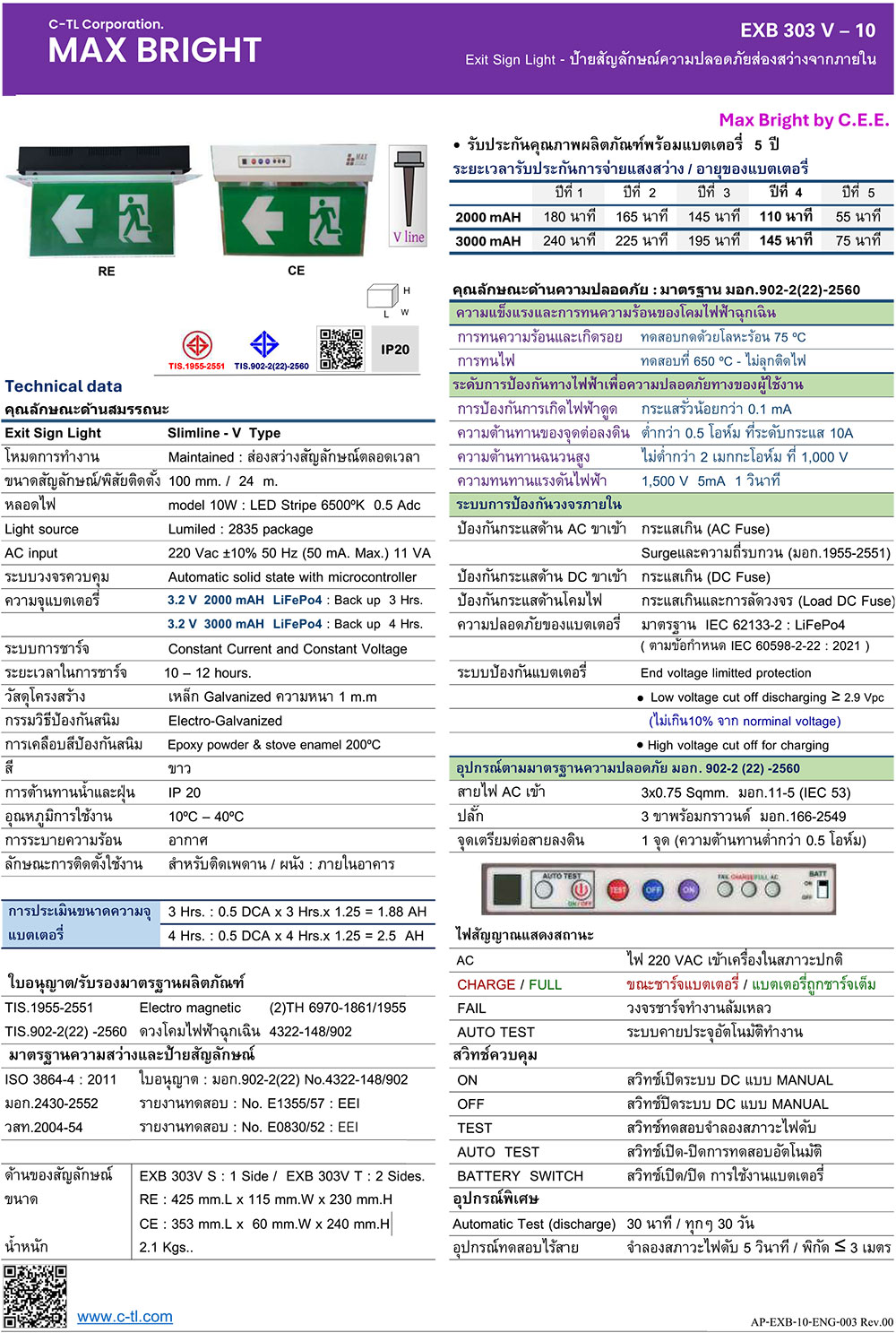 MAX BRIGHT EXB-303-TVCE, 10W, 2hrs. (surface – two side)
