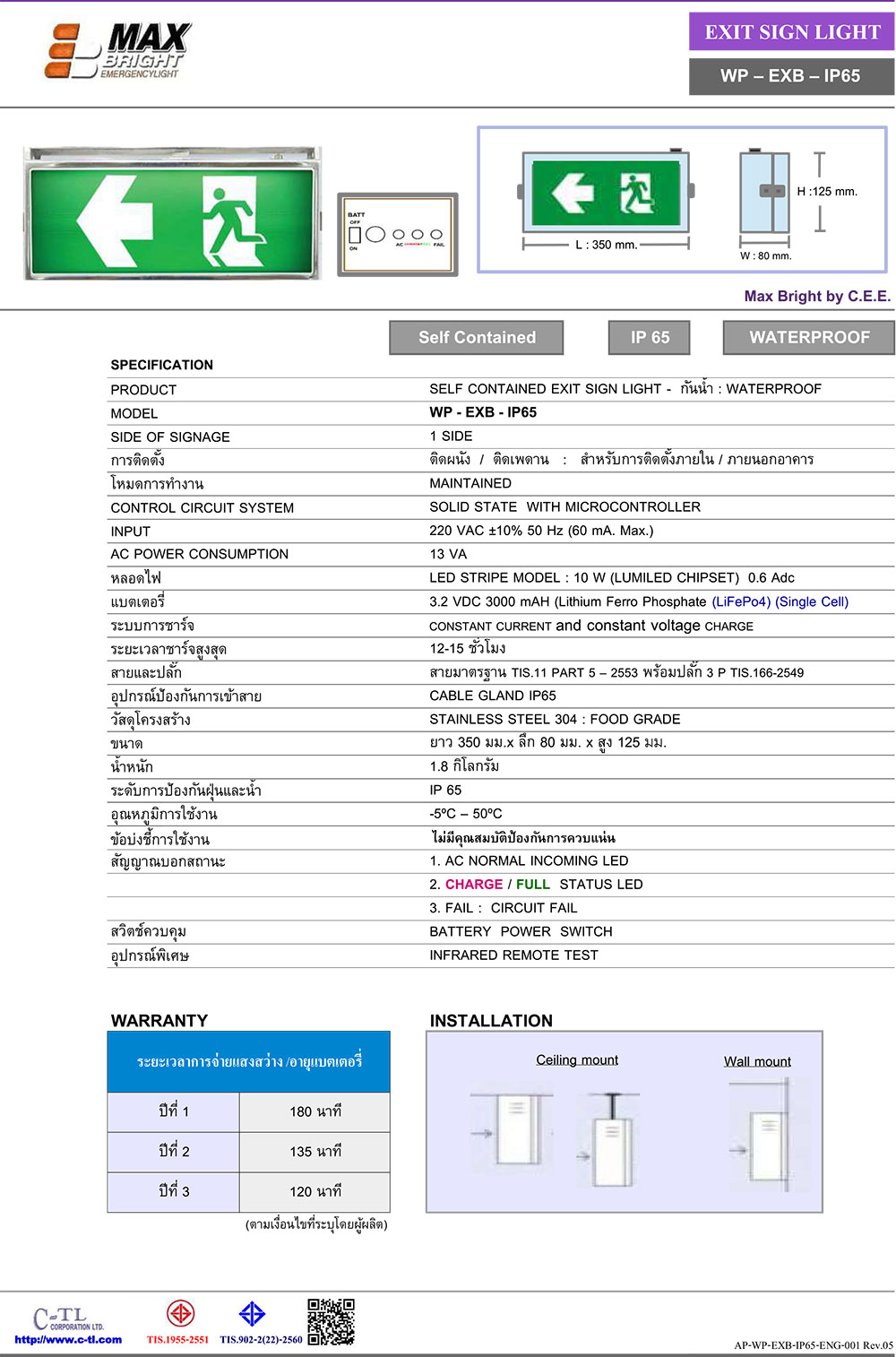 ป้ายไฟสำหรับทางออกฉุกเฉิน แบบฝังฝ้า ยี่ห้อแม๊กไบรท์ – สัญลักษณ์ 1 ด้าน – กันน้ำกันฝุ่น