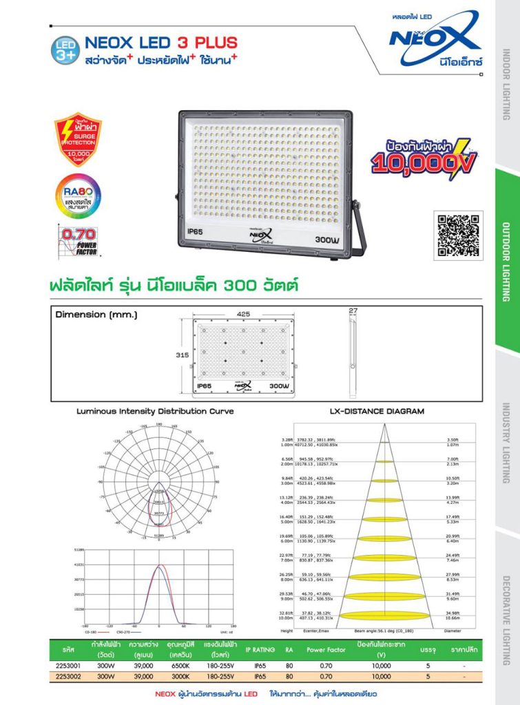 โคมฟลัดไลท์แอลอีดี ยี่ห้อนีโอเอ็กซ์ ขนาด 300 วัตต์ แสงสีเหลือง โคมสีดำ