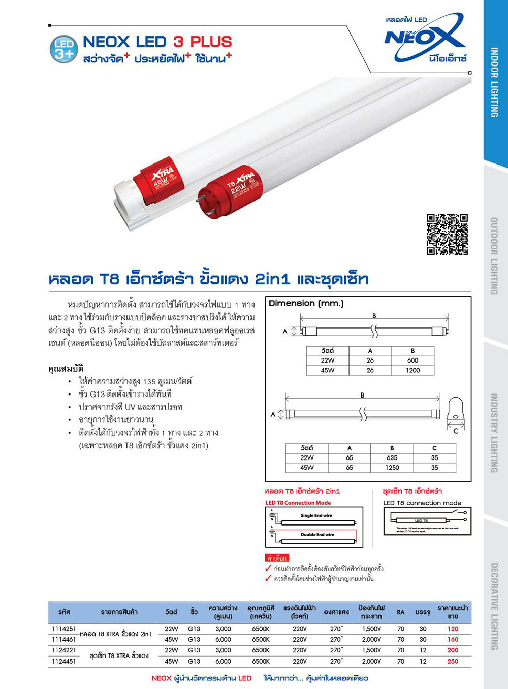 NEOX Extra 2in1 T8 LED 45W 6500K 6000lm DE (120cm.)