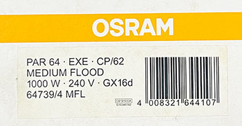 OSRAM PAR64 EXE CP/62 1000W 240V GX16d 64739/4 MFL