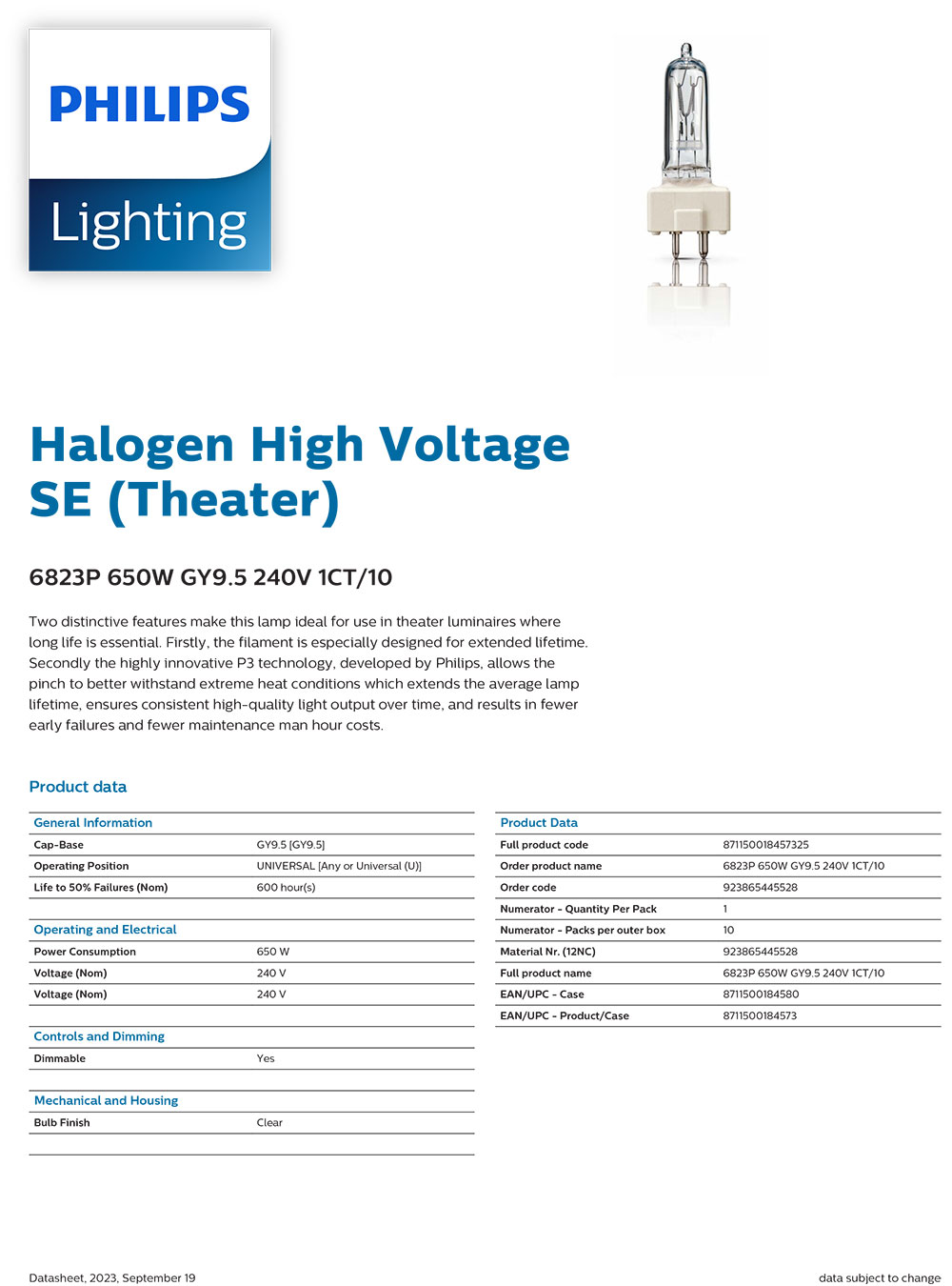 6823P 650W GY9.5 240V 1CT/10