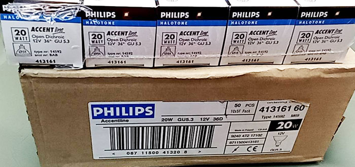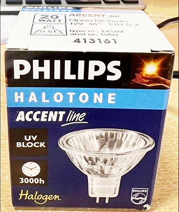 หลอดฮาโลเจน MR16 ขนาด 12 โวลท์ 20 วัตต์ แสงสีเหลือง กระจายแสงมุม 36 องศา *** ไม่มีกระจกปิด