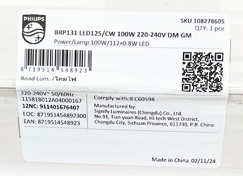 โคมไฟถนนแอลอีดี ยี่ห้อฟิลิปส์ ขนาด 100วัตต์ แสง 5700K