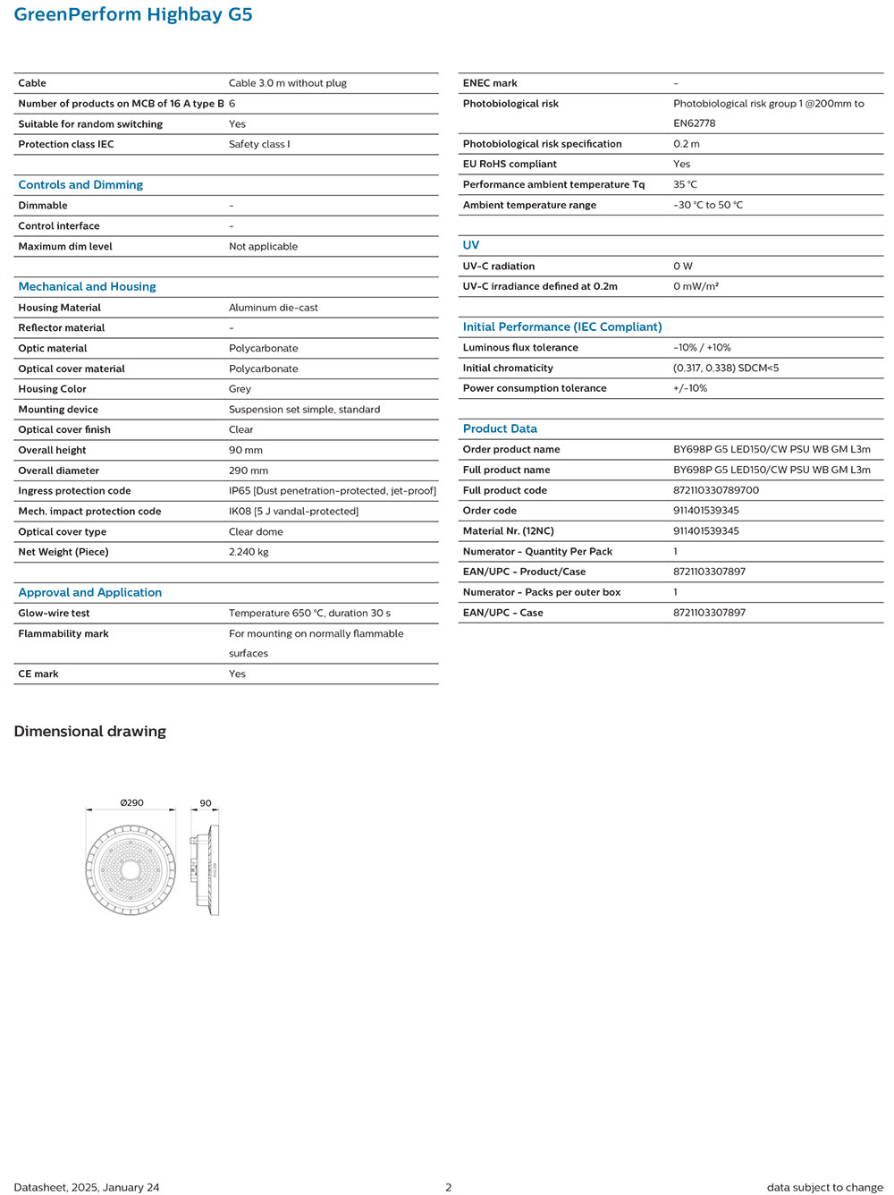 โคมไฮเบย์แอลอีดี ยี่ห้อฟิลิปส์ ขนาด 95 วัตต์ แสงขาว