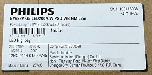 โคมไฮเบย์แอลอีดี ยี่ห้อฟิลิปส์ ขนาด 121 วัตต์ แสงขาว