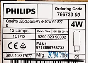 Philips CorePro LED capsule 220V 4W 2700K G9 DIM