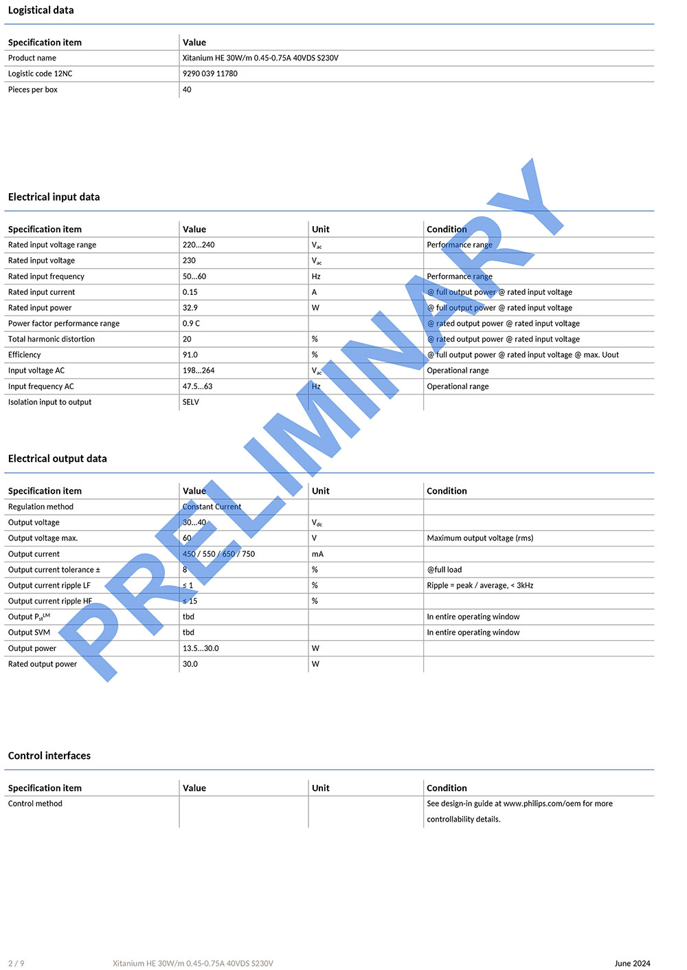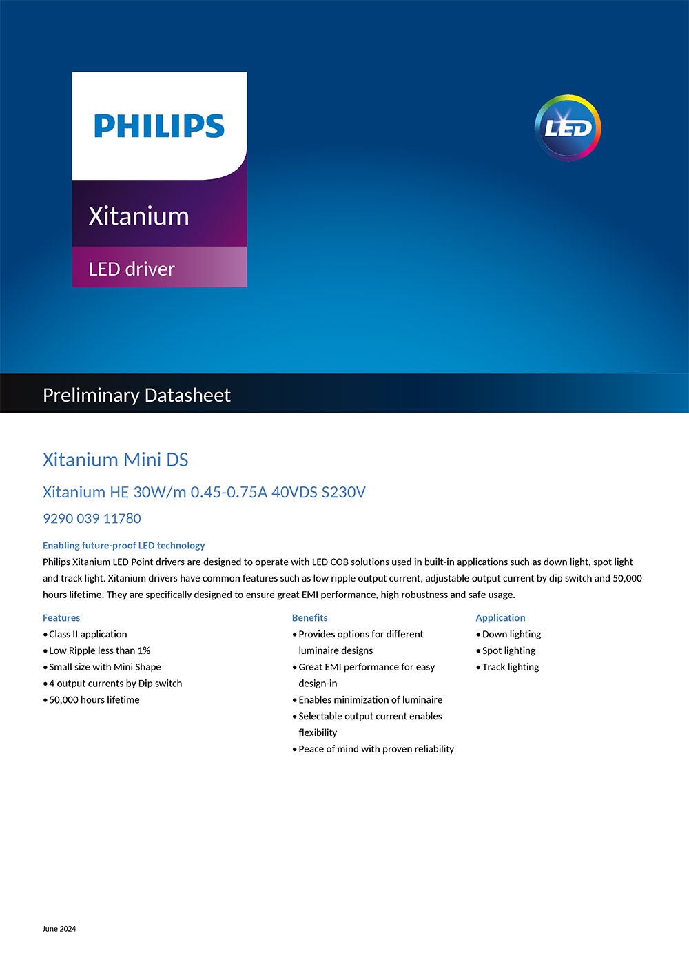 Philips LED driver Xitanium HE 30W/m 0.45-.75A 40VDS S230V G4