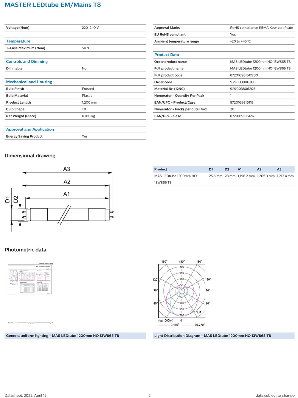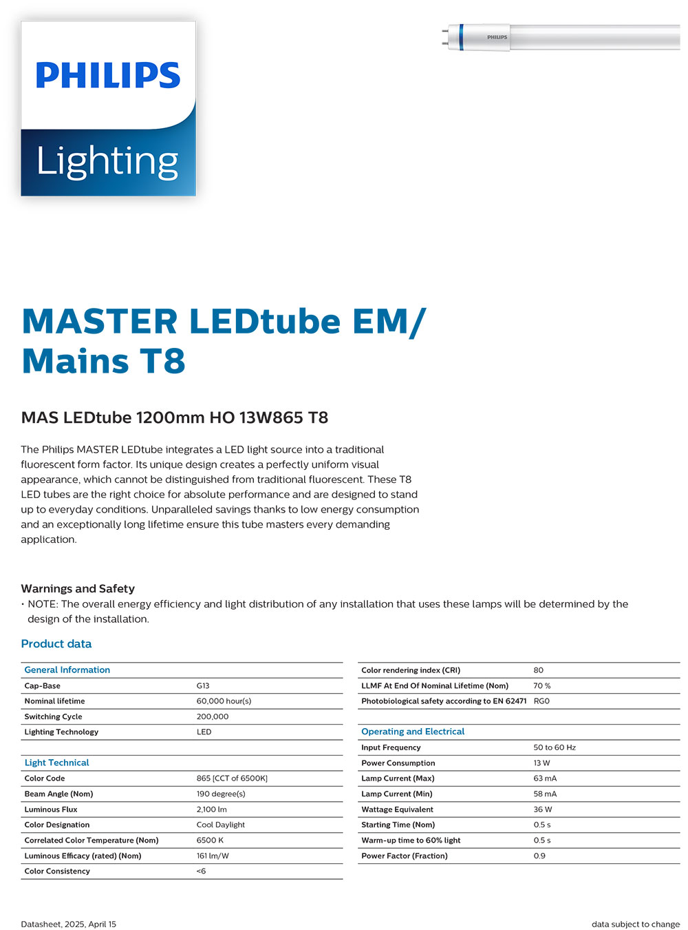 Philips Mas T8 HO 13W 6500K 2100lm 60000hrs. (1.2m)