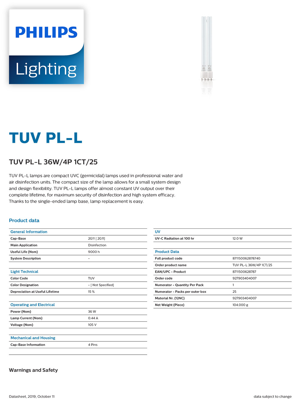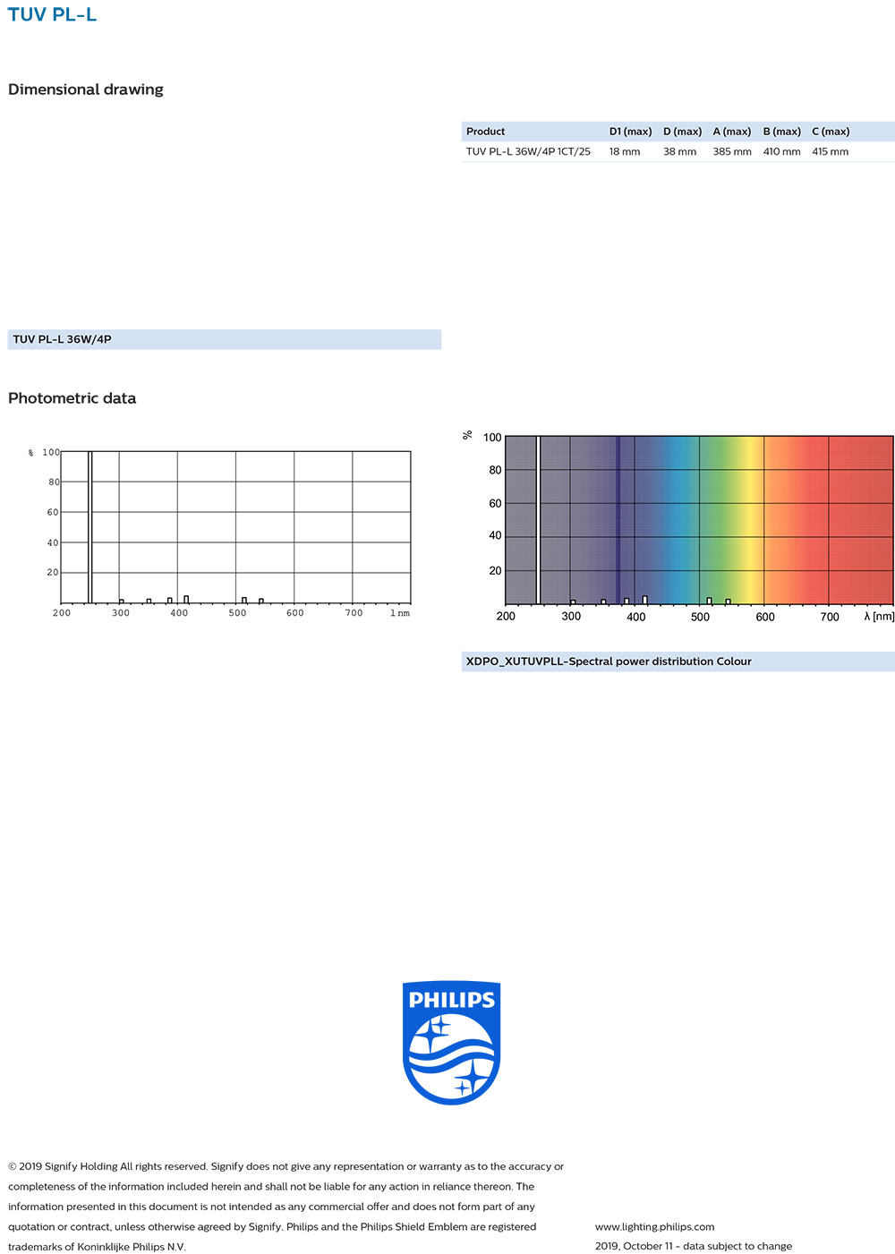 หลอดตะเกียบแสงยูวี ฆ่าเชื้อโรคยี่ห้อฟิลิปส์ ขนาด 36 วัตต์ สำหรับขั้ว 2G11