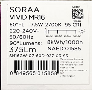 SORAA MR16 LED 12V 7.5W 927 2700K 60D CRI95
