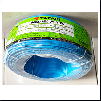 สายไฟฟ้า ยี่ห้อ ยาซากิ ชนิด THW 1×2.5 สีฟ้าอ่อน ยาว 100 เมตร